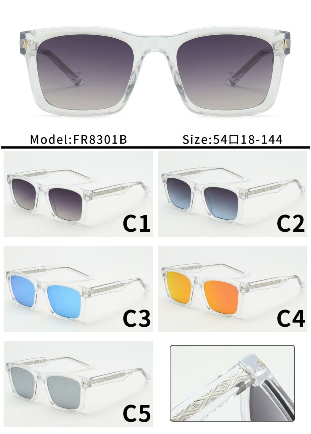 Accueil / LUNETTE SOLAIRE / FR8301B boite de 12 PCS – lunette SOLAIRE ADULTE